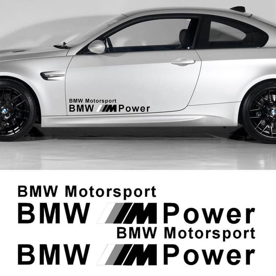 Enrich your car look with the original vinyl sticker, which is a stylish BMW M Power Motor Sports logo with three vertical oblique stripes. This sticker, created for the left and right sides of your car, will emphasize its sporty spirit and personality. High-quality vinyl guarantees durability and resistance to external influences, and its ideal dimensions will make installation as simple as possible. Bring dynamism and aesthetics to your car with this stylish decorative sticker.