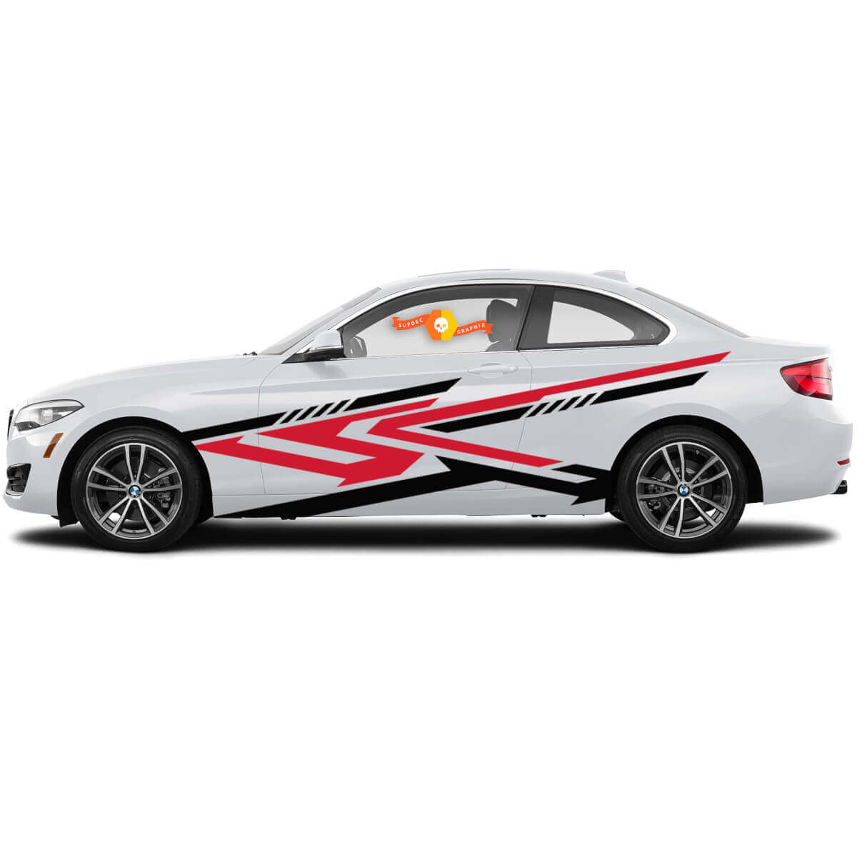 This set consists of a pair of vinyl graphic decals designed for BMW sides. These side decals feature stylish graphic lines and zigzags that are easy to apply to the side of your car.