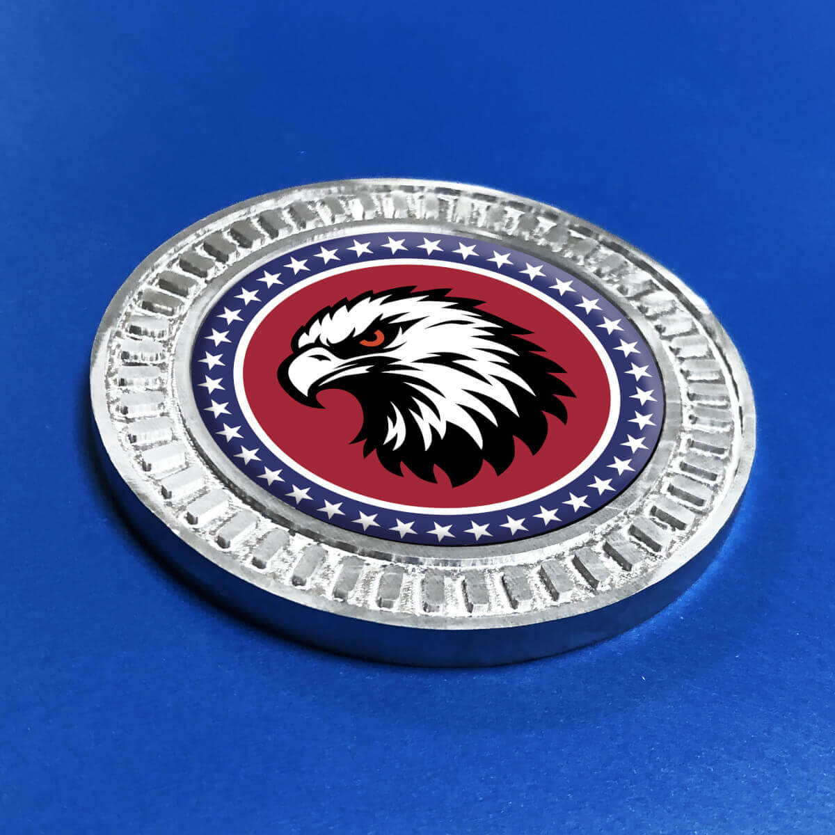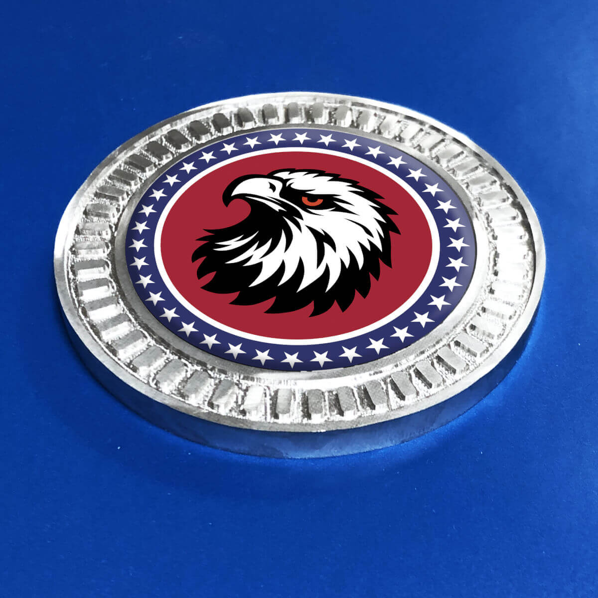 - Distinctive bald eagle and stars design