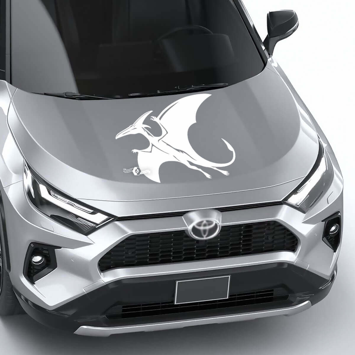 Transform your vehicle with the Pterodactylus antiquus Universal Hood Vinyl Decal, a unique and eye-catching graphic sticker perfect for any car enthusiast. This high-quality vinyl decal is designed to fit universally on most vehicle hoods, adding a prehistoric and adventurous vibe to your ride.