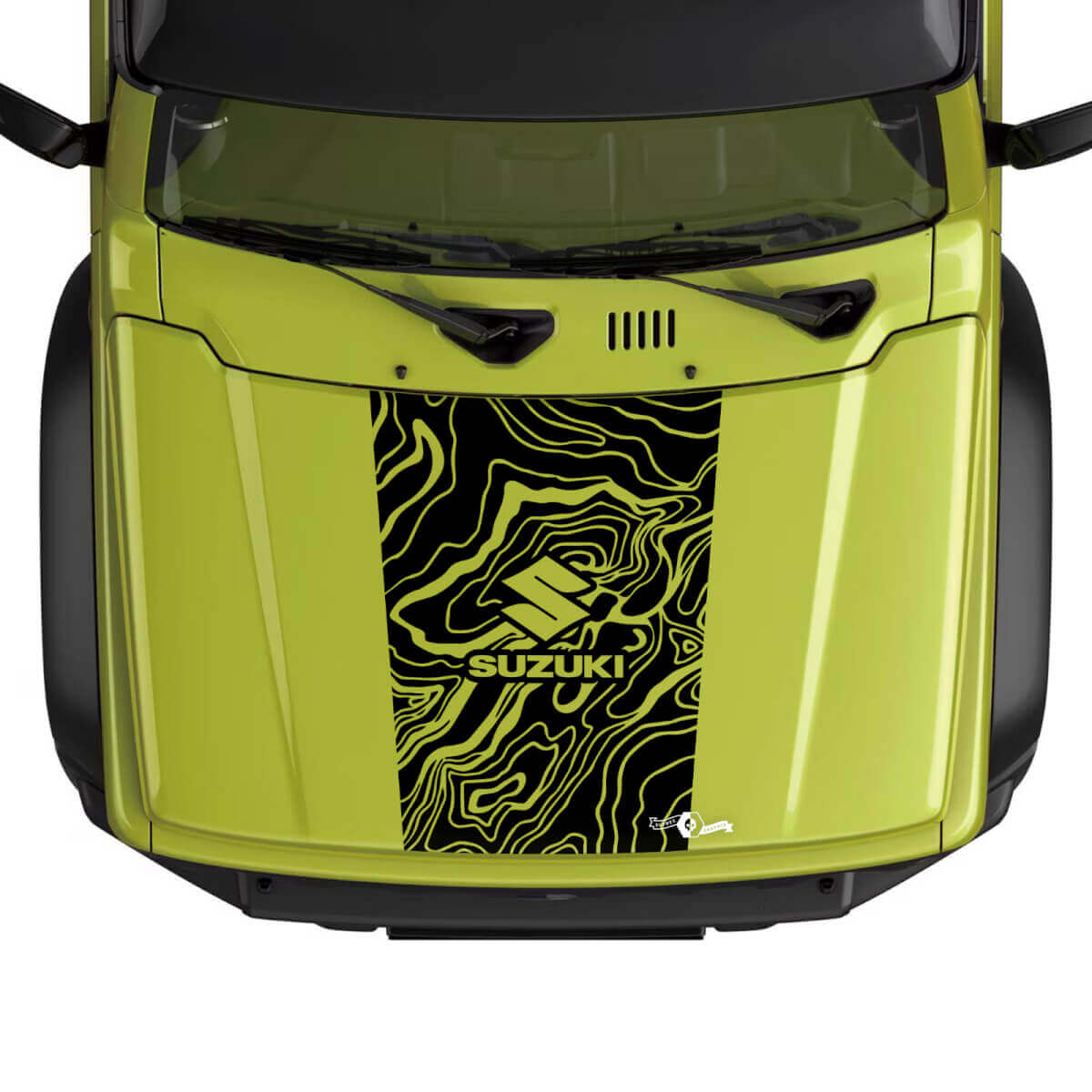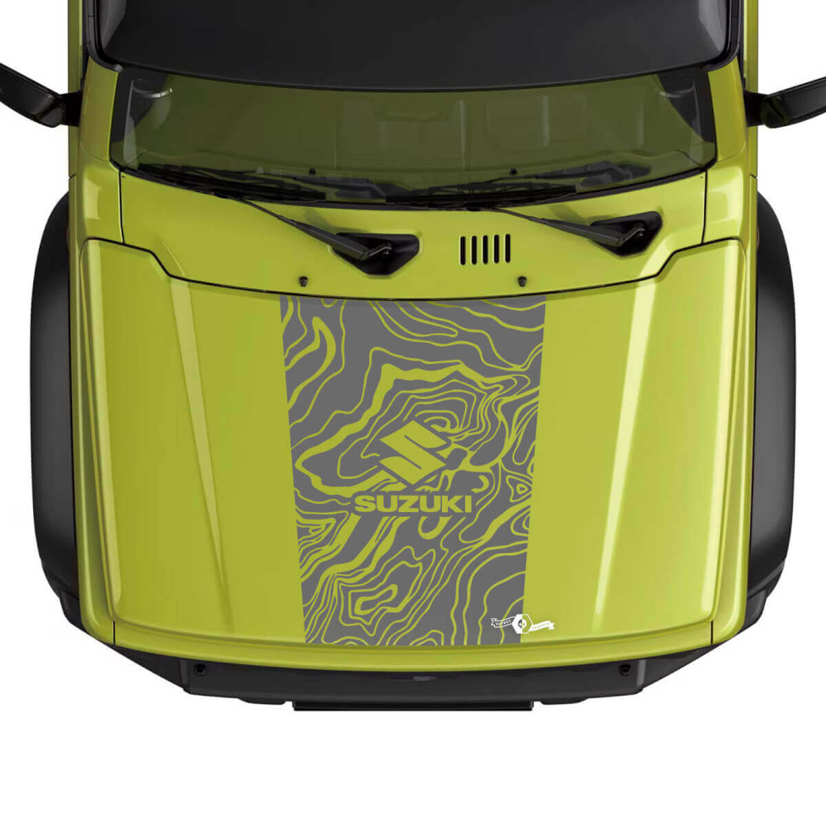 Enhance your Suzuki JIMNY's look with our Hood Topographic Map Logo decal sticker. Made from durable vinyl, this high-quality graphic adds a distinctive, adventurous touch to your vehicle's hood.