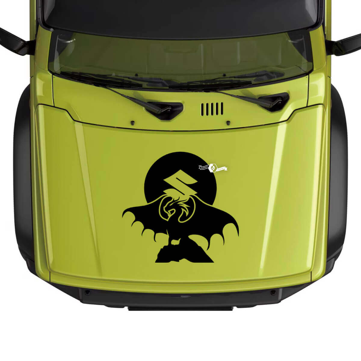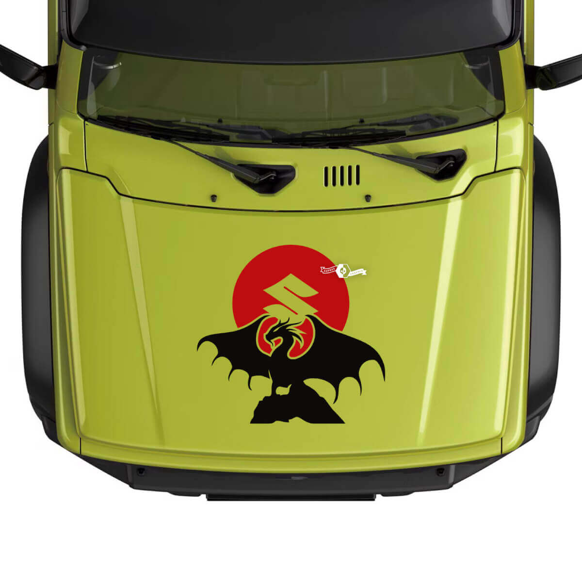 Upgrade your Suzuki JIMNY with the dynamic Hood Dragon on Sun Logo decal sticker graphics. This high-quality vinyl decal is designed to add a bold and unique look to your vehicle's hood.
