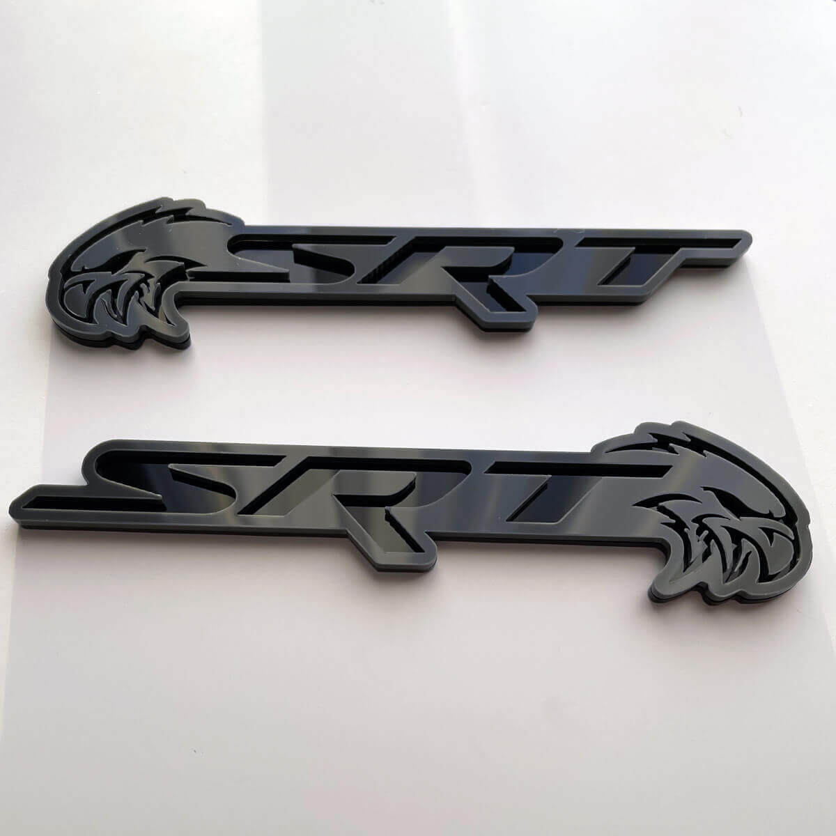Enhance your vehicle's appearance with the Trackhawk 3D Badge Black vs Grey Fender Badges Emblem. This high-quality vinyl decal combines sleek black and grey tones to give your car a bold, custom look.