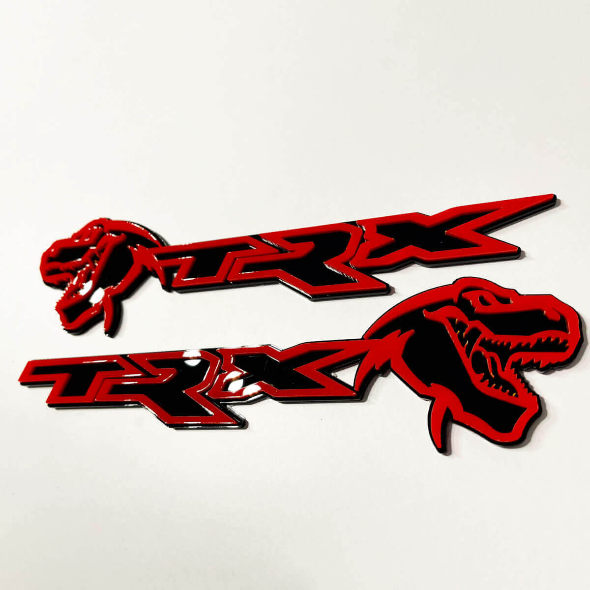 Enhance your vehicle's look with the TRX 3D Black vs Red Fender Badge Emblem. Crafted for durability and style, this bold emblem adds a striking contrast to your car's fender, making it stand out on the road.