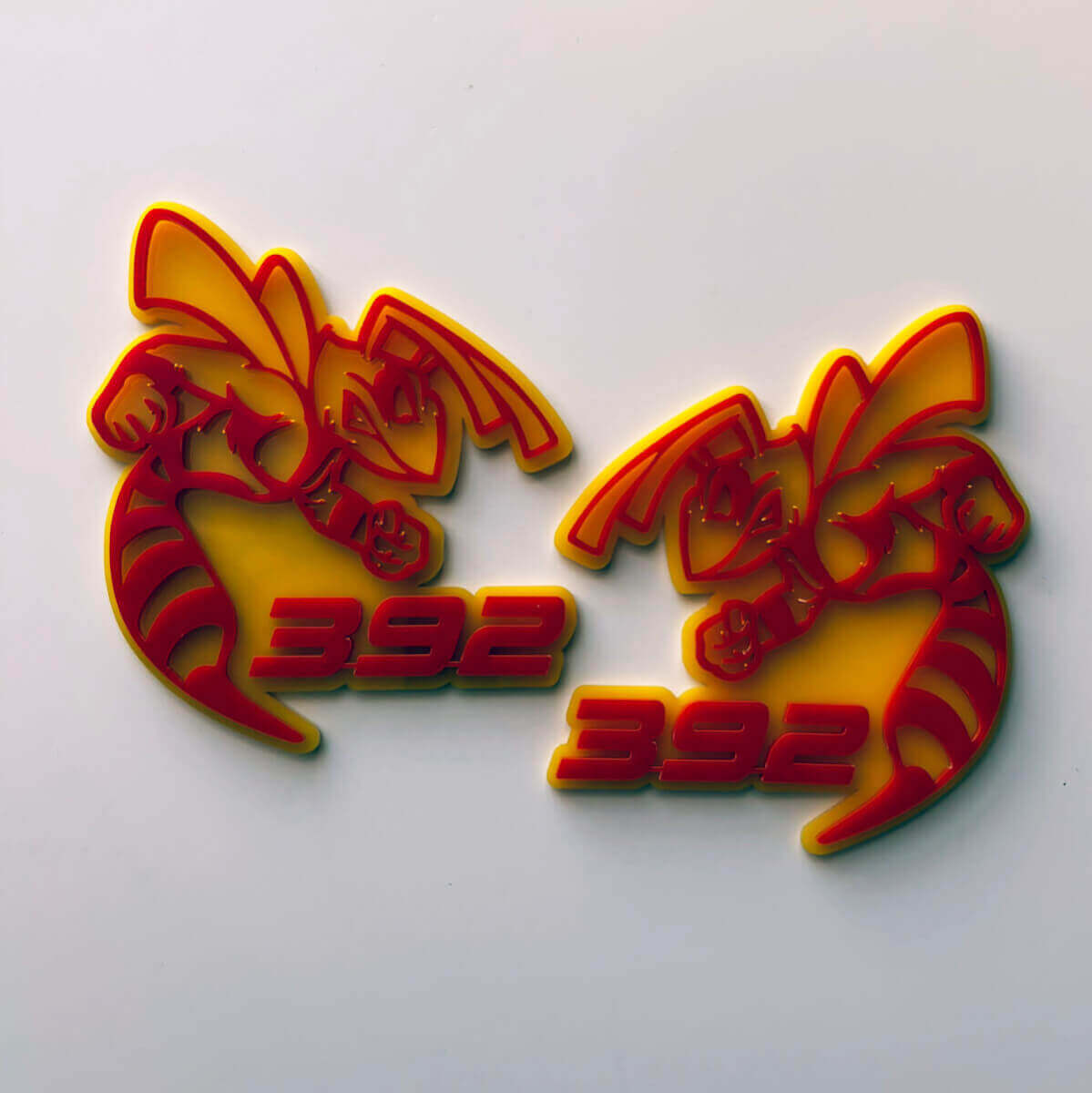 Upgrade your vehicle's style with the Hornet Bee 392 3D Fender Badge Emblem. Designed for car and truck enthusiasts, this high-quality, durable 3D emblem features a striking hornet bee design and the iconic 392 logo. Perfect for fender, grille, or trunk placement, this custom emblem adds a bold, aggressive look to any vehicle. Easy to install with adhesive backing, the Hornet Bee 392 badge is resistant to weather and car wash damage. Available in a sleek, glossy finish, it's ideal for those looking to customize their ride with a distinctive touch.