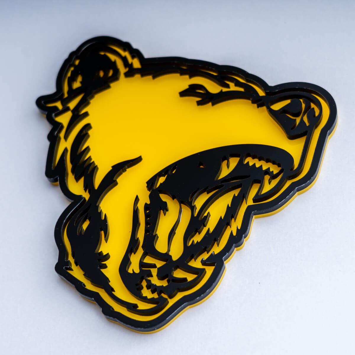 - "Weatherproof 3D grizzly badge for vehicles"