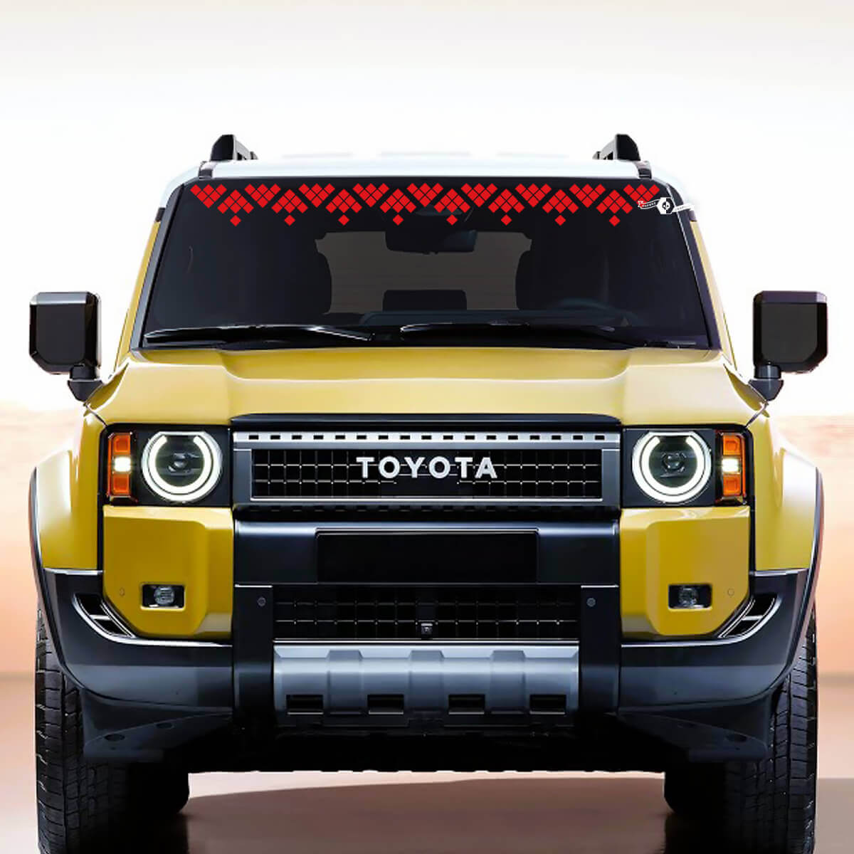 Enhance your Toyota Land Cruiser's style with our high-quality windshield decal ornament. Made from durable vinyl, this sticker is designed to withstand the elements while adding a bold, personalized touch to your vehicle.