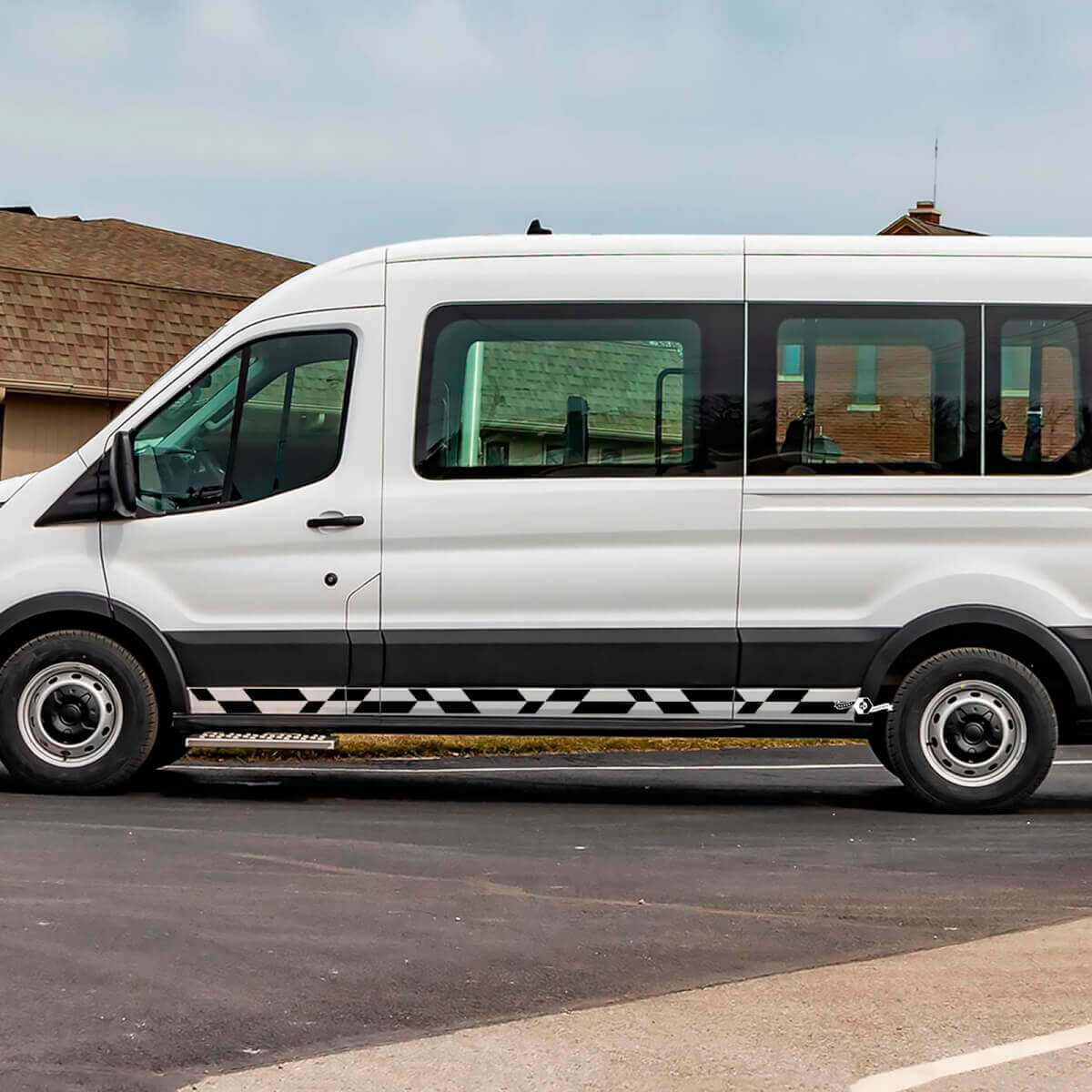 - Precise checkered stripe design tailored for Ford Transit