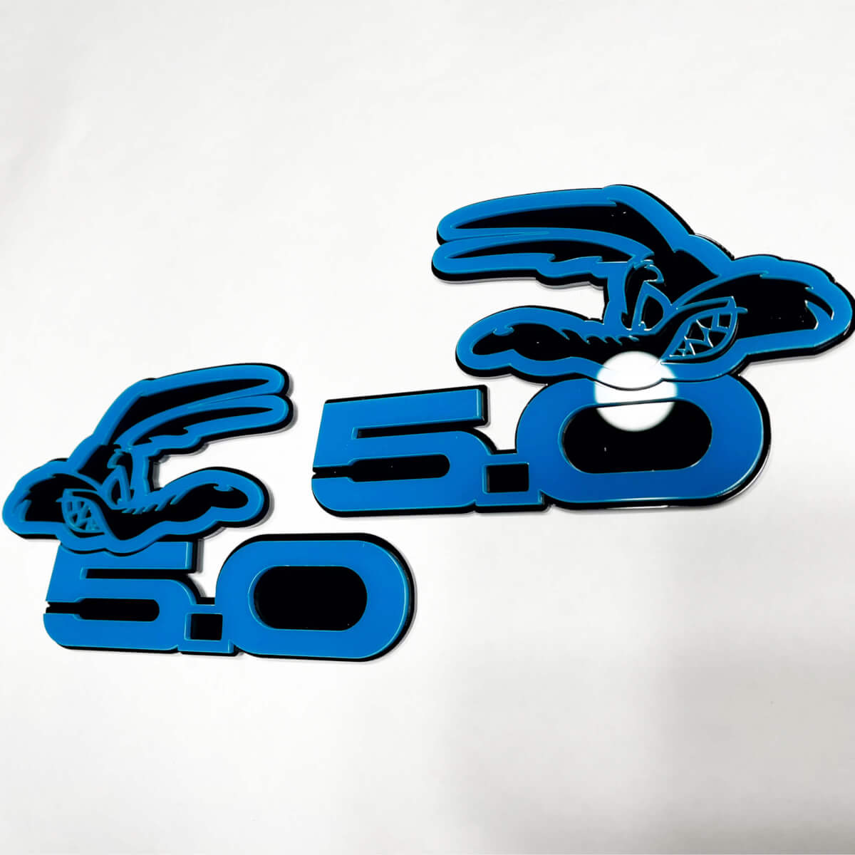 Upgrade your vehicle's style with the COYOTE 5.0 Fender Badges Emblem, available in sleek black or vibrant blue. These 3D badges are crafted from high-quality vinyl, ensuring long-lasting durability and a bold, eye-catching look.