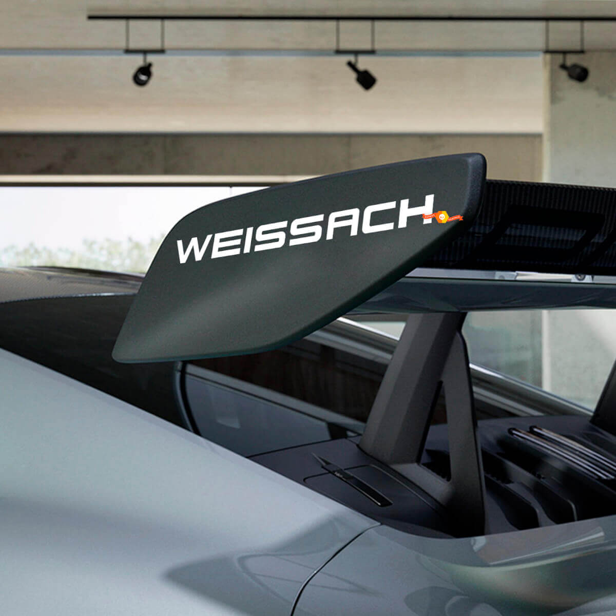 Upgrade your Porsche GT3 with the Weissach RS Spoiler Decal Sticker, designed to add a sleek and sporty touch to your vehicle's rear spoiler.