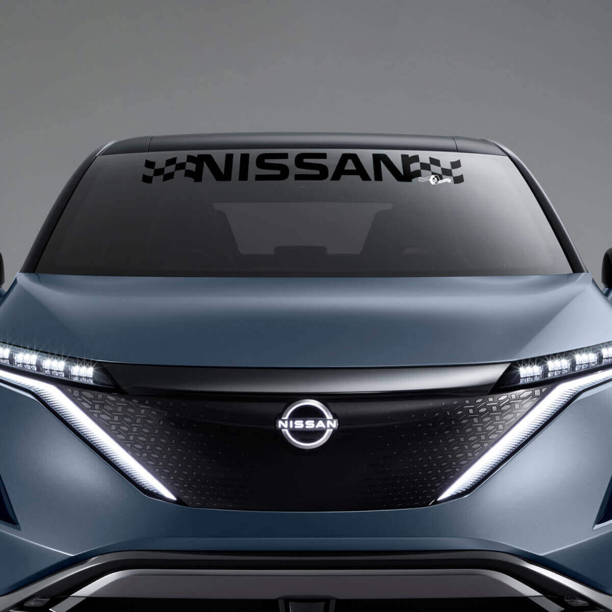 Upgrade your Nissan ARIYA's look with our Windshield Checkered Graphics Decal Sticker. Designed for a perfect fit, this vinyl decal adds a sporty and stylish touch to your vehicle's windshield.