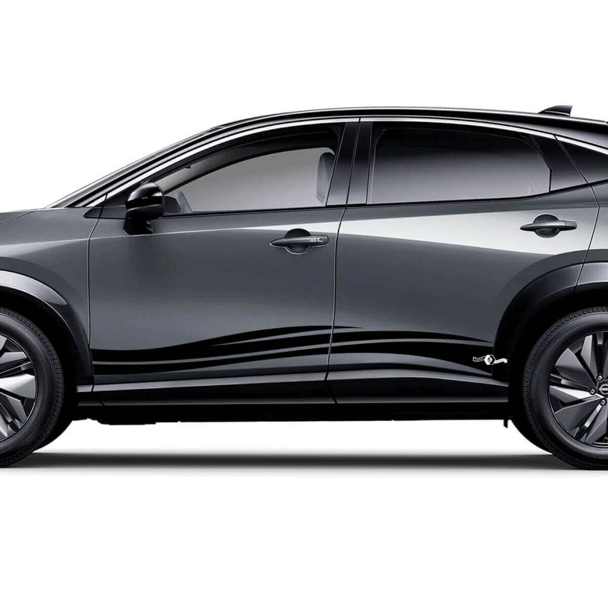 Enhance your Nissan ARIYA with the Sides Universal Wave Graphics Decal Kit. Designed for a perfect fit, this vinyl decal set adds a sleek, modern wave pattern that complements your vehicle’s style.