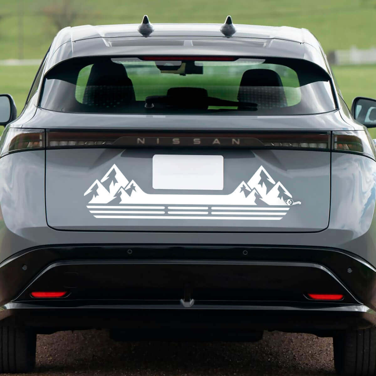 With our Rear Mountains Racing Graphics Decal, you can stand out on the road and showcase your love for adventure and the great outdoors. The detailed mountain design adds a rugged and adventurous look to your Nissan ARIYA, making it a unique and eye-catching vehicle on the road. Whether you're cruising through the city streets or hitting the open highway, this decal will make a statement.