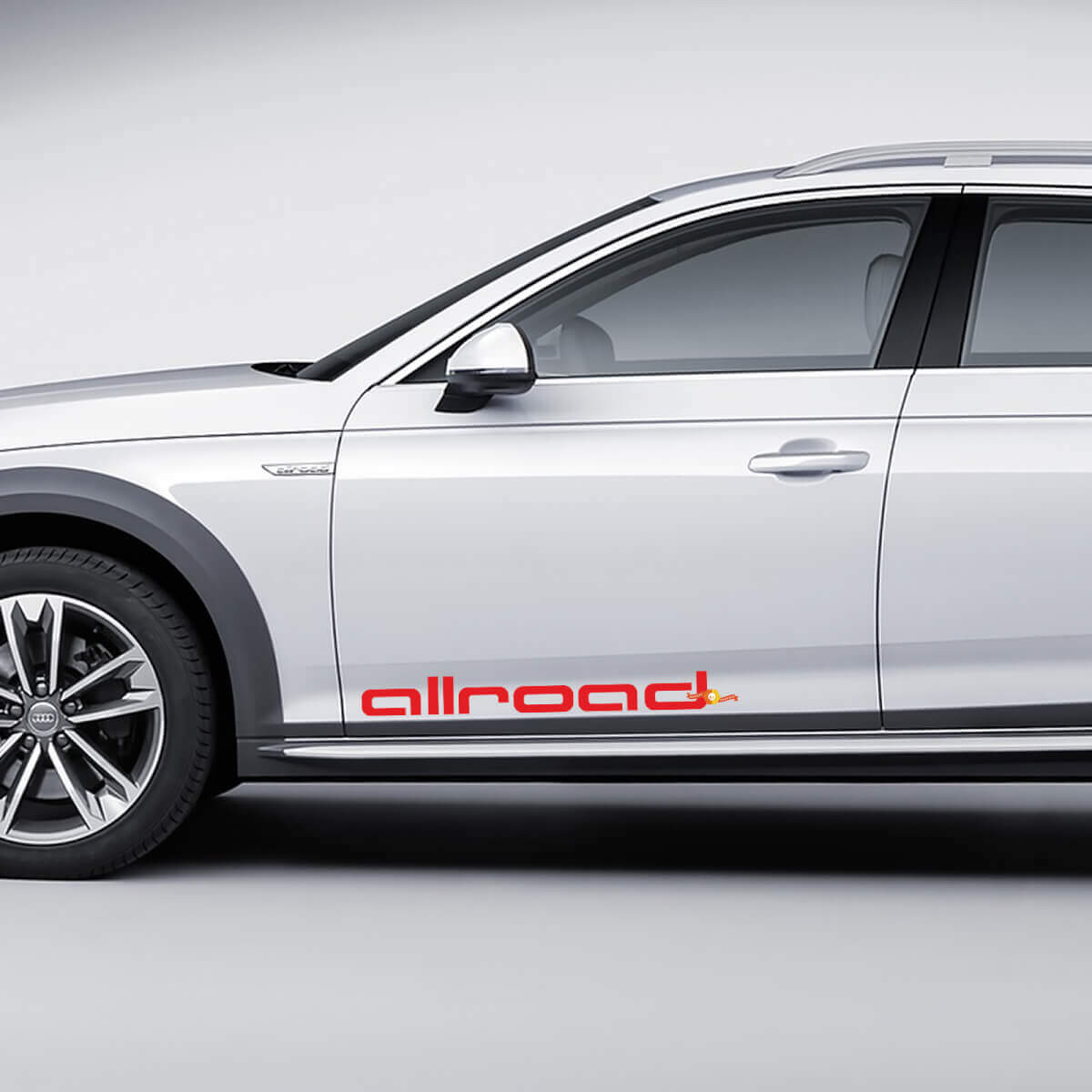 These decals are custom-designed for the Audi Allroad, ensuring a perfect fit on your vehicle's doors. The precise measurements and contours of the decals match the shape of the doors, creating a seamless look that appears as if the decals are part of the original design.