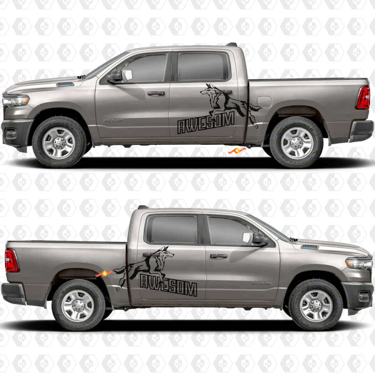 Transform your vehicle’s side doors and bedside areas with our Awesome Wolf Splash Stickers Decals Graphics. These high-quality vinyl decals feature a striking wolf design with dynamic splash effects, perfect for adding a bold and adventurous look to your car or truck. Whether you want to personalize your ride or make a statement on the road, these durable stickers offer a sharp, vivid appearance that stands out.