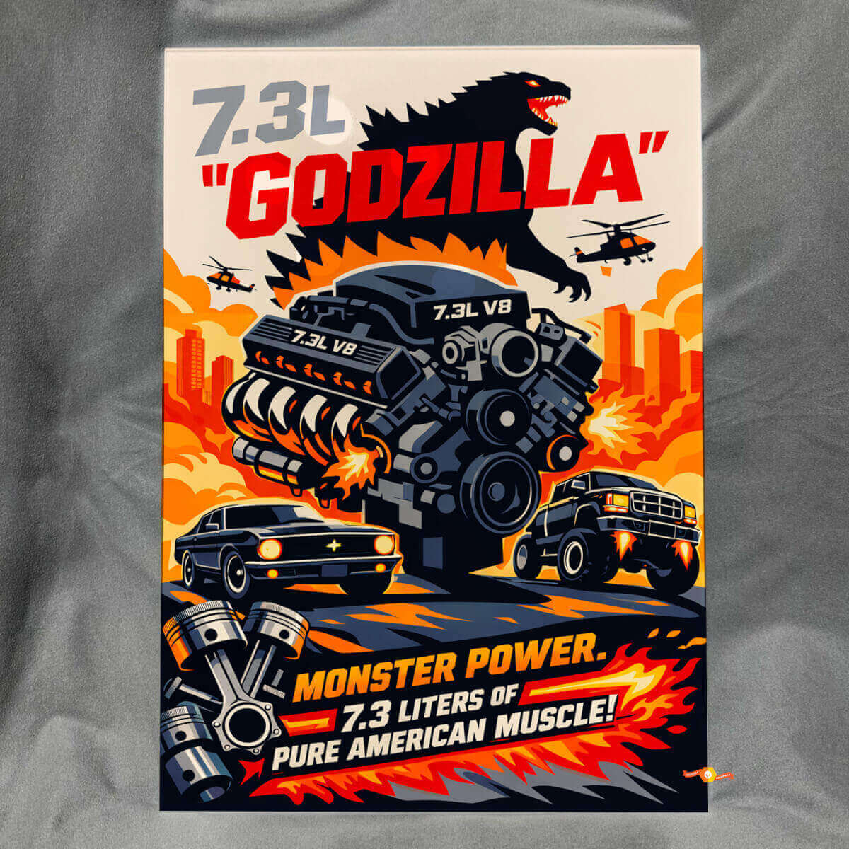 7.3L Godzilla Monster Power Glossy Acrylic Garage Wall Art Panel