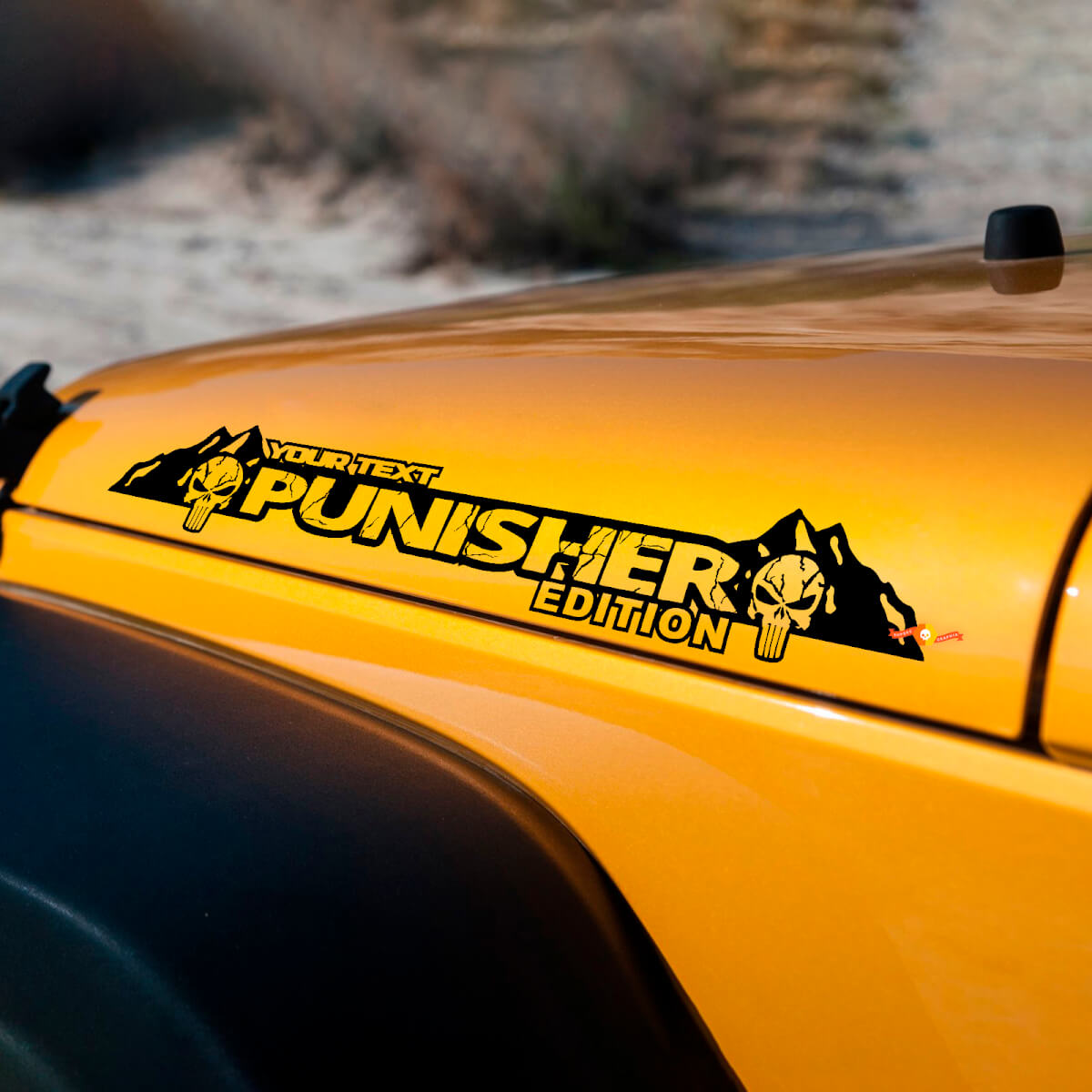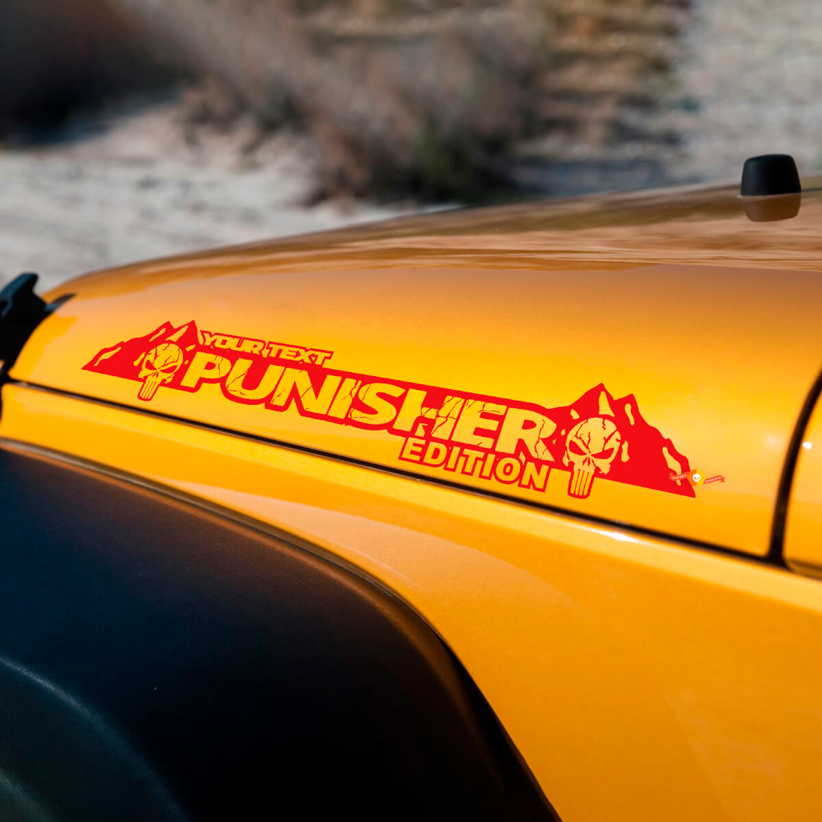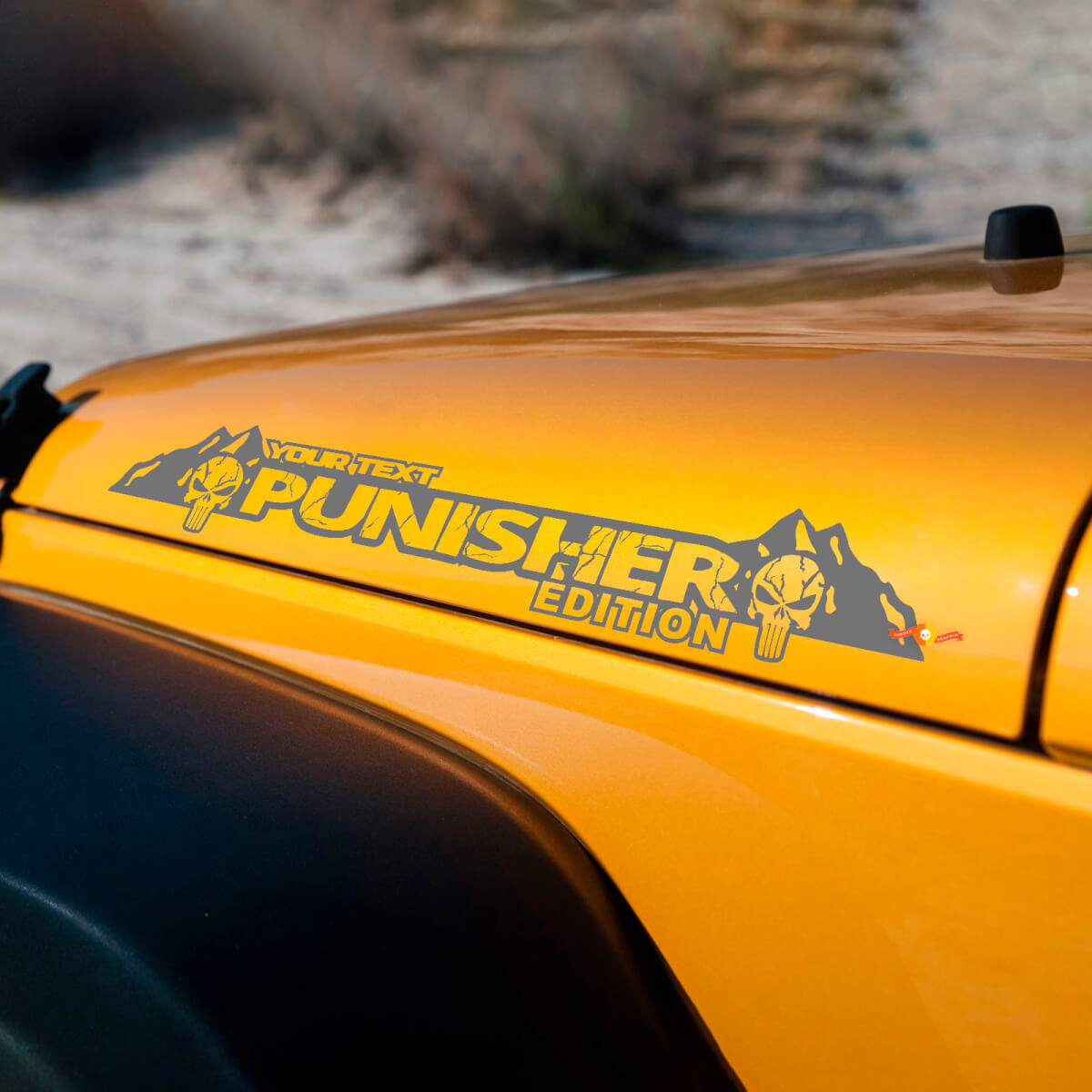 Give your Jeep Wrangler a fierce, custom upgrade with our Punisher Edition Lettering Hood Vinyl Decals. Designed for durability and easy installation, these decals add a bold touch that stands out on any Wrangler.