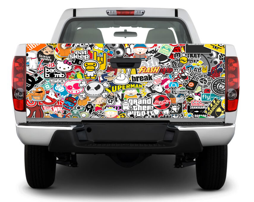 Give your pick-up truck or SUV a bold, unique look with our Sticker Bomb Tailgate Decal Sticker Wrap. Made from high-quality vinyl, this decal is designed to withstand the elements while adding a vibrant, edgy style to your vehicle's tailgate.