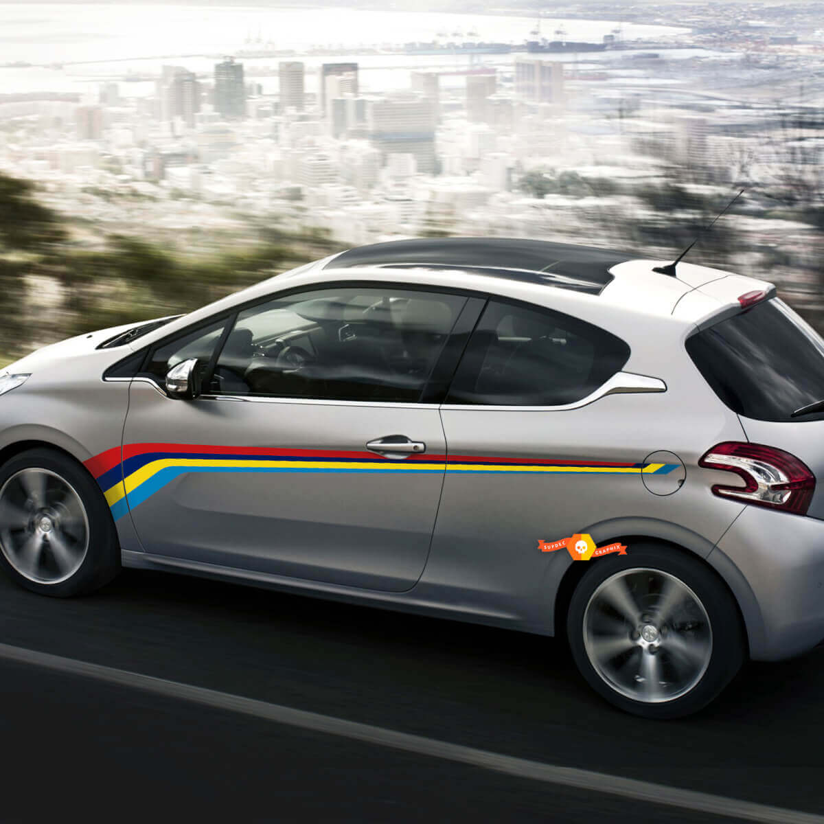 Upgrade your Peugeot 208 with our premium side stripes decals. These high-quality vinyl stickers add a stylish touch to your car’s look, making it stand out on the road.
