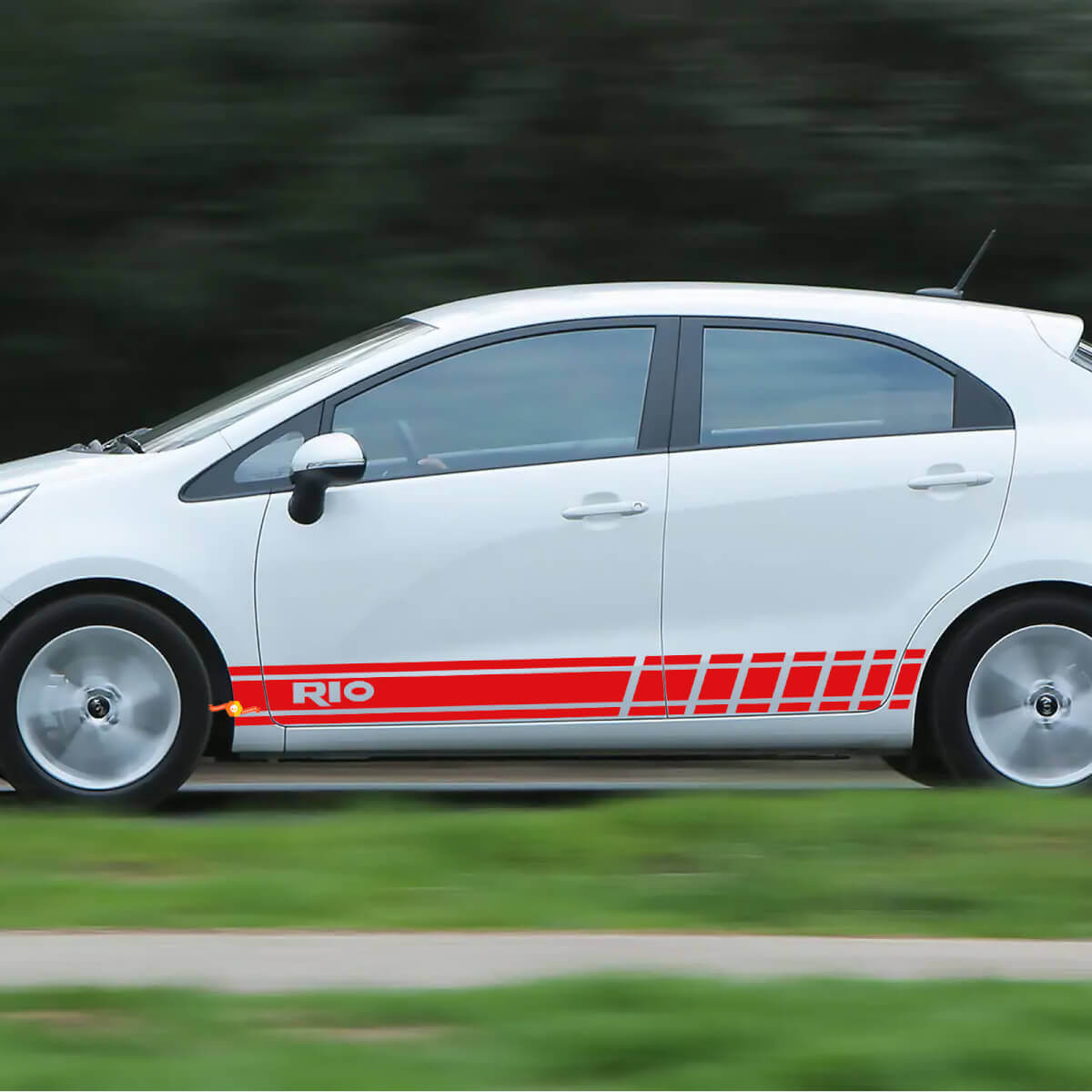 Upgrade your Kia Rio's look with our Side Racing Stripes vinyl decal sticker. Designed for a perfect fit, these decals add a sporty flair to your vehicle, making it stand out on the road.