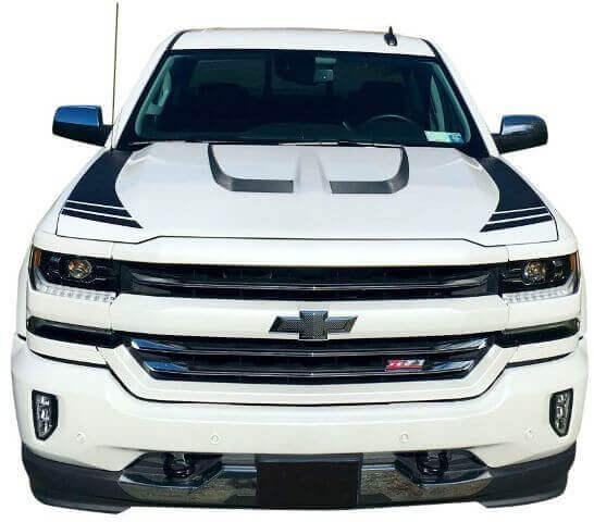 Upgrade your 2016-2018 Chevrolet Silverado 1500 with our Hood Accent Graphic Stripes, designed to add a sporty and unique flair to your truck's appearance.