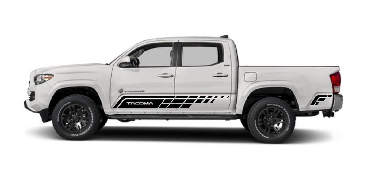 Enhance the look of your Toyota Tacoma 2015-2018 with our premium side vinyl graphics decals kit. Designed for a perfect fit, these stripe stickers add a sleek, sporty touch to your truck’s exterior.