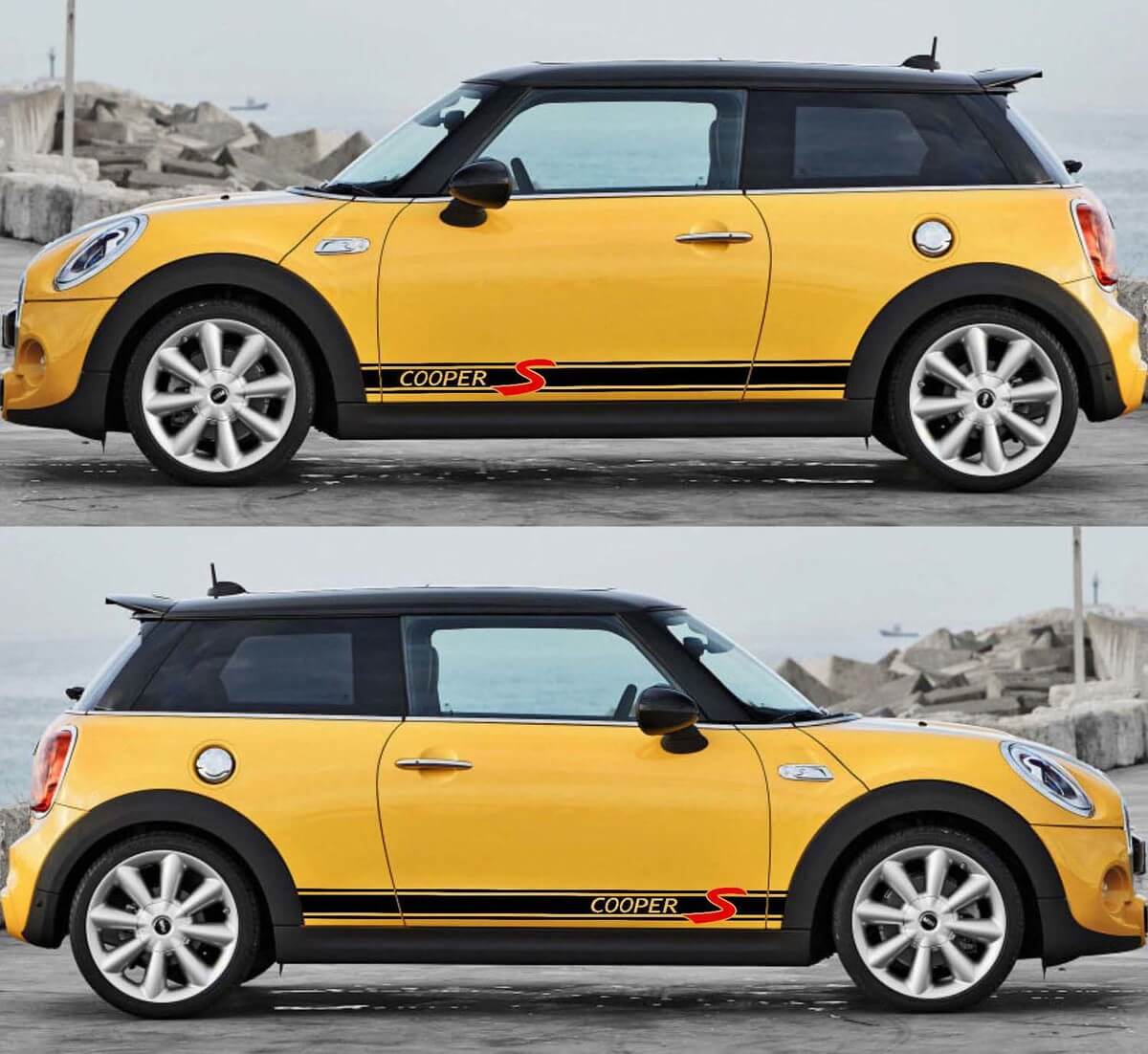 Upgrade your Mini Cooper S (2014-2018) with our exclusive 2X Side Stripe Decals. These vinyl stickers are designed to perfectly fit your vehicle’s side panels, adding a sporty and sleek look.