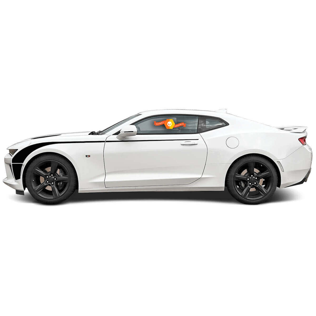 Enhance the sporty look of your Chevrolet Camaro 2016-2018 with our Extended Hockey Side Accent Vinyl Stripes. Crafted from high-quality vinyl, these decals offer a sleek design that perfectly complements your vehicle's lines.
